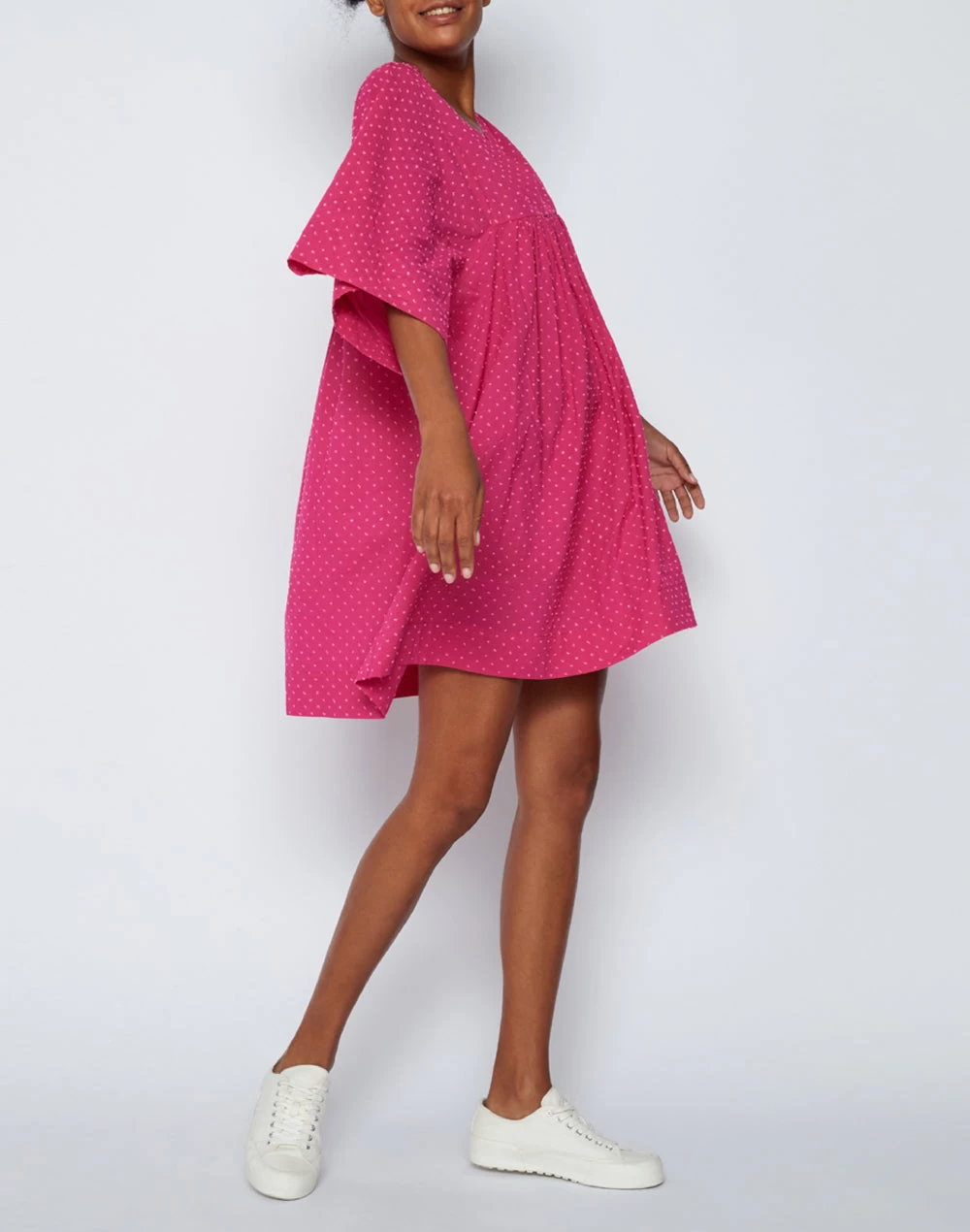 Gioca coi colori e scegli questo abito in cotone vichy a maniche corte e scollo a V. Dal taglio ampio e dalla linea dritta, è ideale da indossare nei momenti di relax per un look più informale o abbinato a un accessorio.