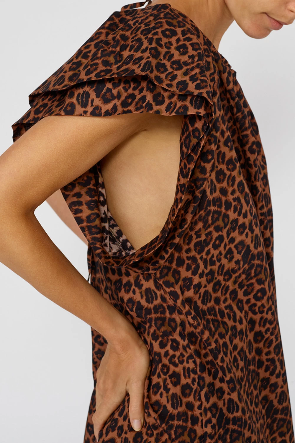 Lasciati avvolgere dalla fantasia leopardata di questo abito della collezione Primavera Estate. Fresco, leggero, in cotone muslin, può essere indossato anche con un sofisticato cinturino in vita, per dare un tocco ricercato al tuo look.