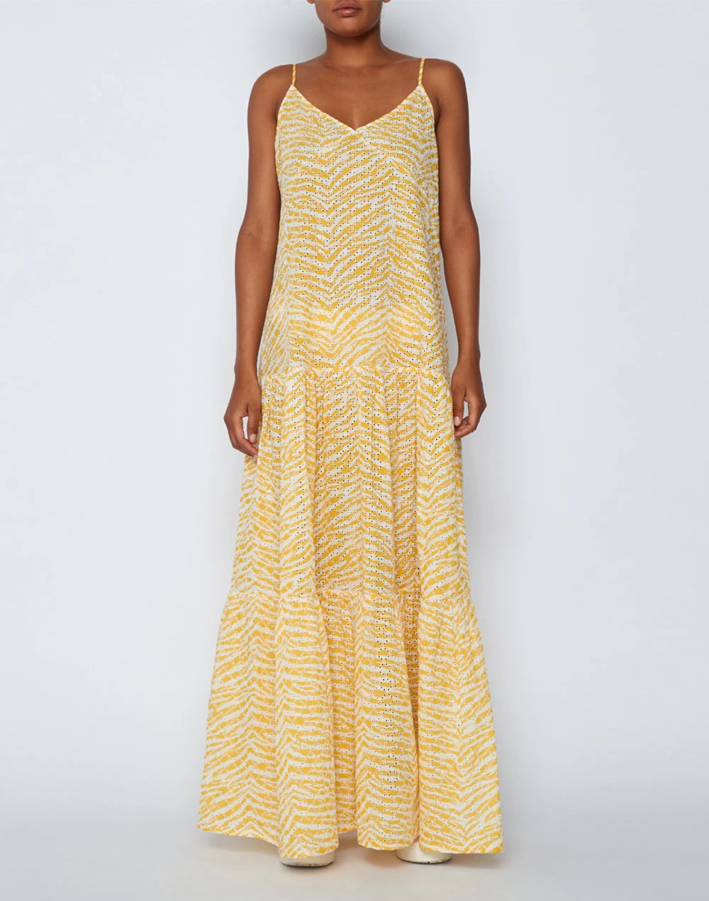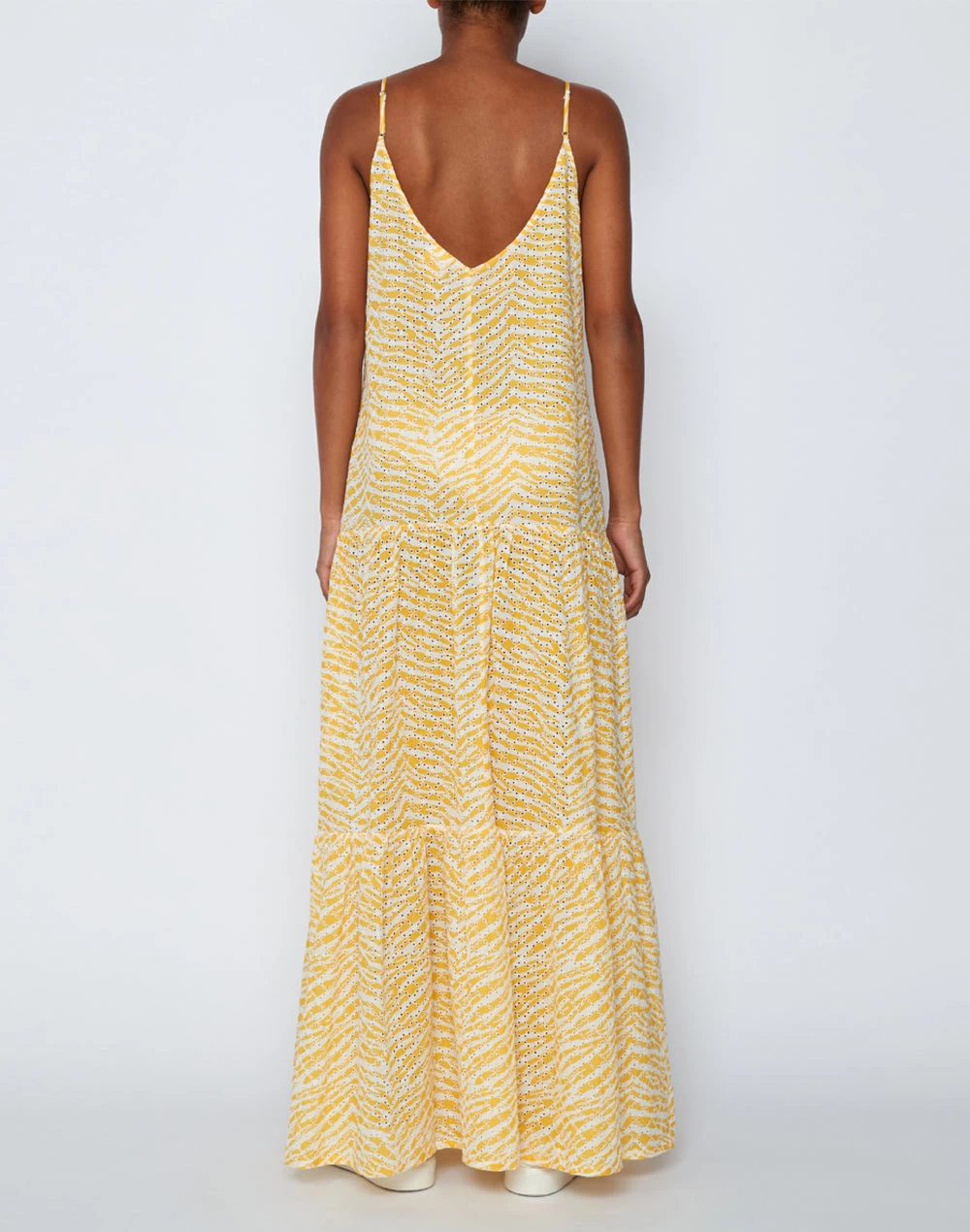 Scegli il fascino grintoso di questo abito lungo con spalline sottili a motivo zebrato. Lasciati avvolgere dalla freschezza del cotone. Ideale da indossare sia per occasioni eleganti che più casual.