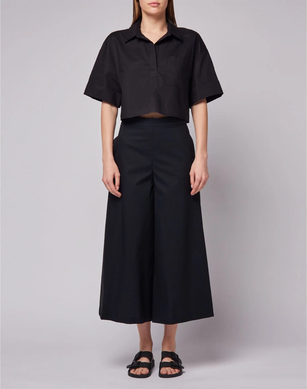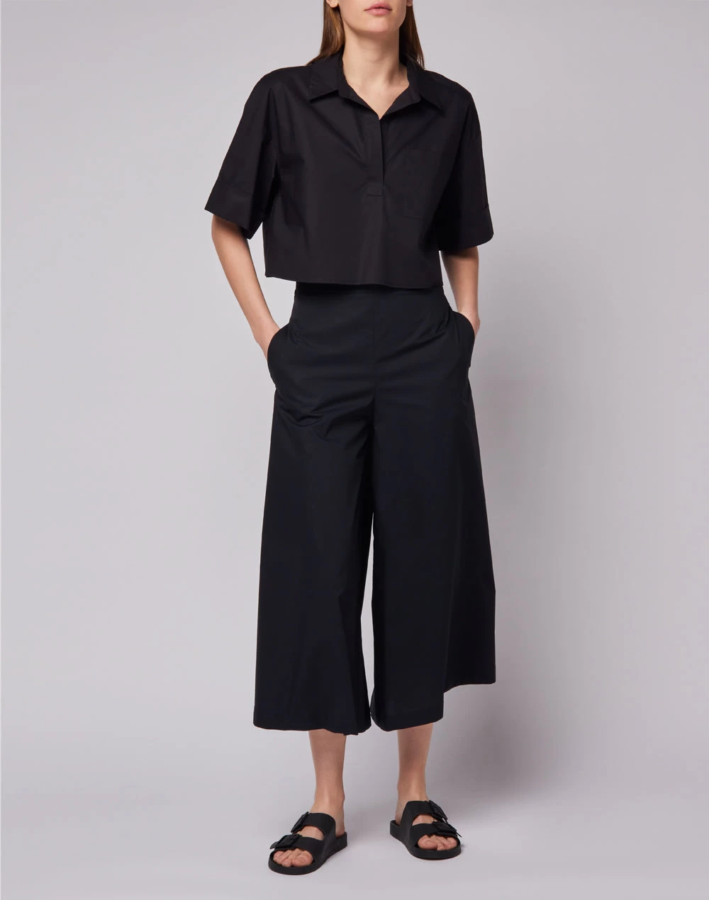 Camicia a maniche corte in popeline con tasca frontale e ampia apertura. Ideale sopra una gonna, dei pantaloni o degli shorts.