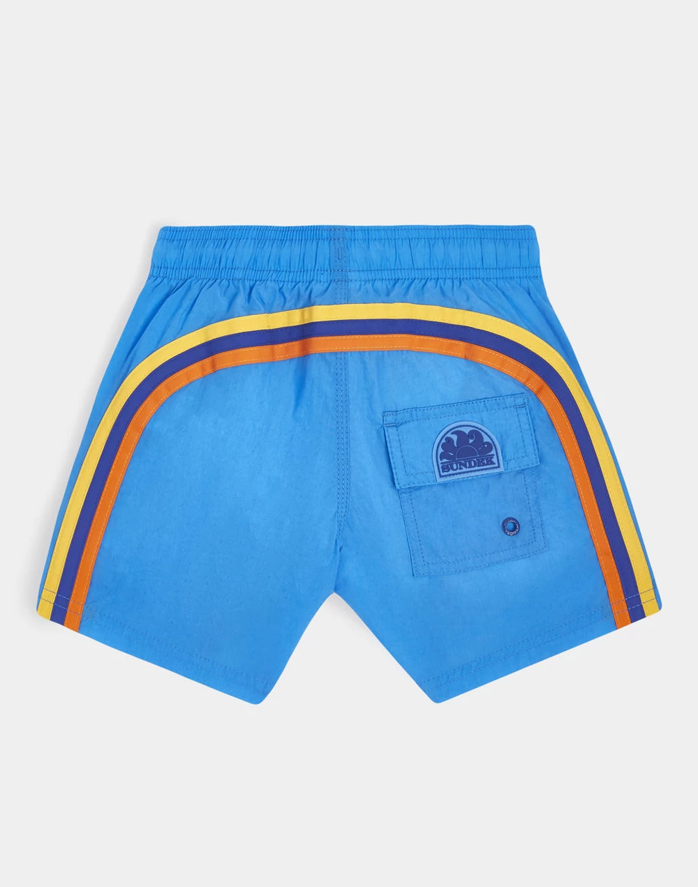 Colore intenso e tessuto iper-confortevole ad asciugatura rapida per questi pantaloncini mare bimbo. Un modello che accompagnerà il tuo bimbo nelle sue mille attività in vacanza, perfetto per muoversi e giocare in piena libertà. è realizzato nel nostro tessuto storico nylon-taffetà e costruito con cuciture a tre aghi che lo rendono resistente nel tempo. Da mettere in valigia, anno dopo anno.
