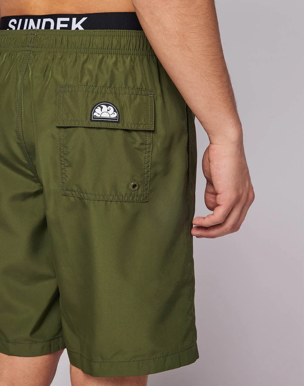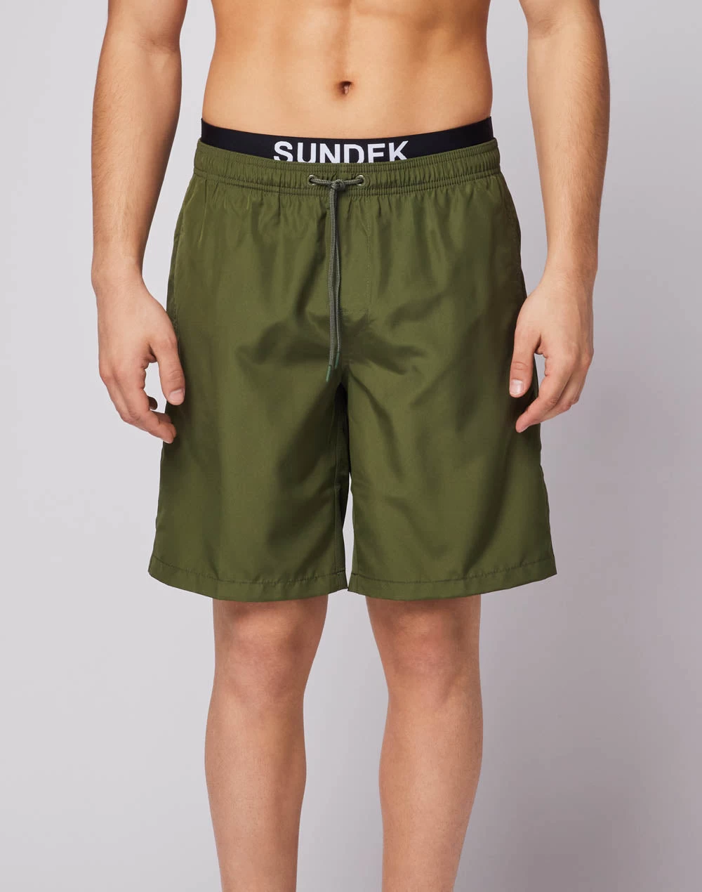 Incarna lo spirito Sundek, indossa questo costume da bagno lungo a tinta unita ed elastico logo brandizzato. Dotato inoltre di tasche laterali, tasca posteriore e coulisse per regolare l’aderenza. Il poliestere leggero con cui è realizzato dona freschezza e una rapida asciugatura. Lunghezza sull’esterno gamba 18”/46 cm (in taglia M).