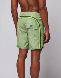 Costume mare uomo lungo con vita fissa, coulisse e iconico arcobaleno Sundek sul retro. Questo costume è realizzato con cuciture a tre aghi sull’area di maggior stress, a garanzia di massima resistenza. Il tessuto scelto è un è Poliestere leggero, per darti comodità ovunque, tra le onde e fuori dall’acqua. Vestibilità a vita bassa. Lunghezza 18″/46 CM (in taglia 32).
