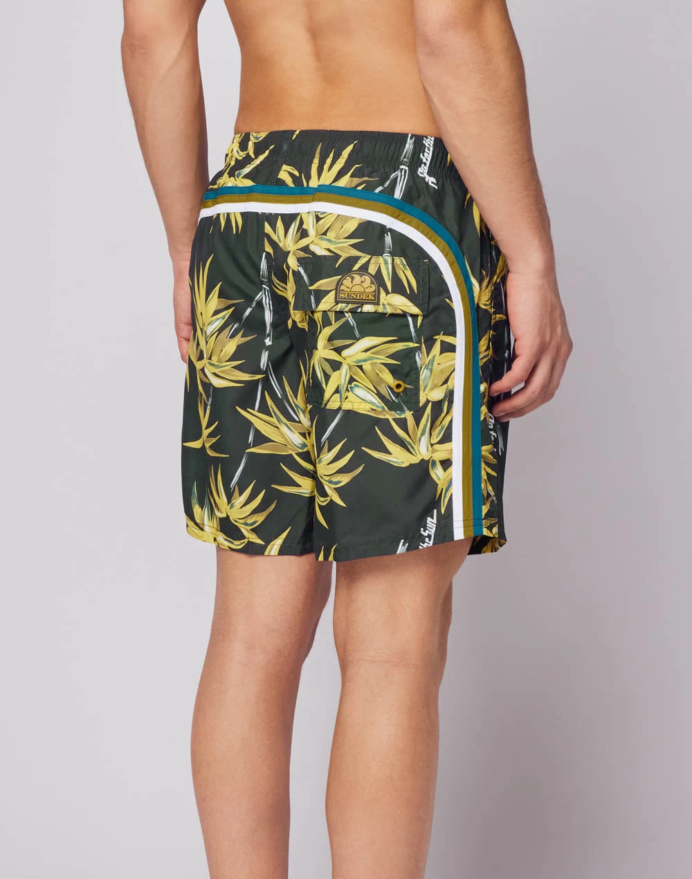 Spirito green, ispirazione floreale e l’iconico arcobaleno Sundek sul retro fanno di questo costume un must have del beachwear: realizzato in tessuto REPREVE® riciclato, ricavato dal riutilizzo delle bottiglie di plastica, questo costume è leggero, resistente e si asciuga rapidamente.