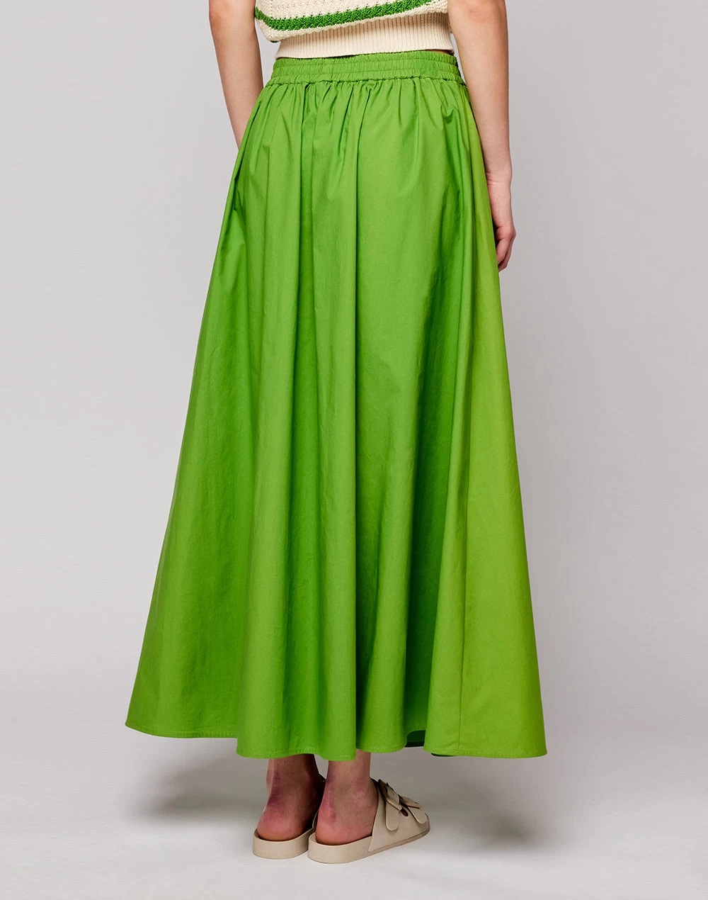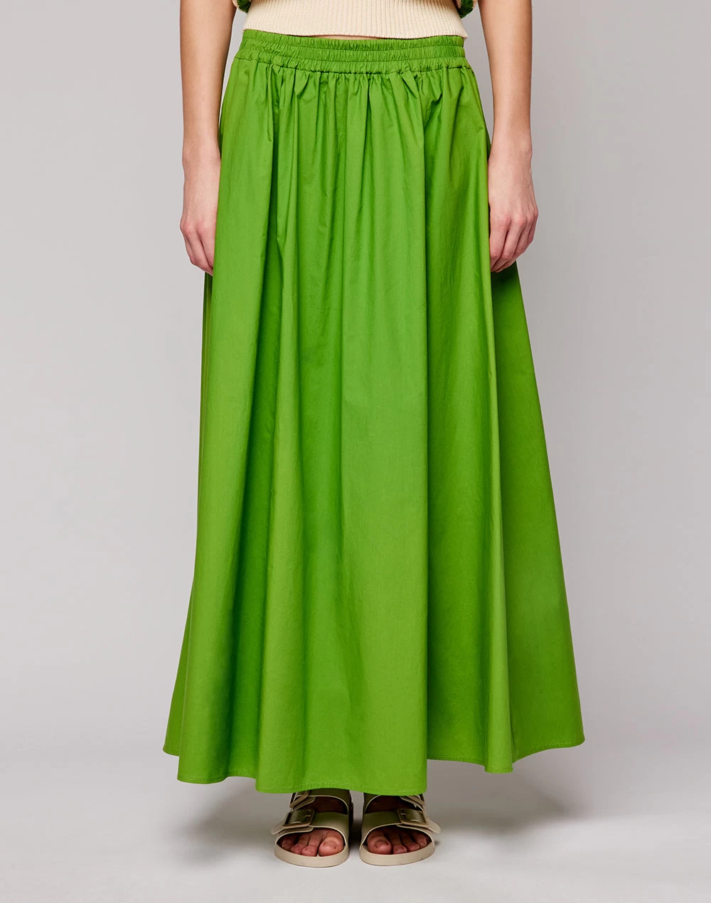 Volume maxi e costruzione femminile per la gonna lunga in popeline di cotone. Versatile, da abbinare come vuoi.