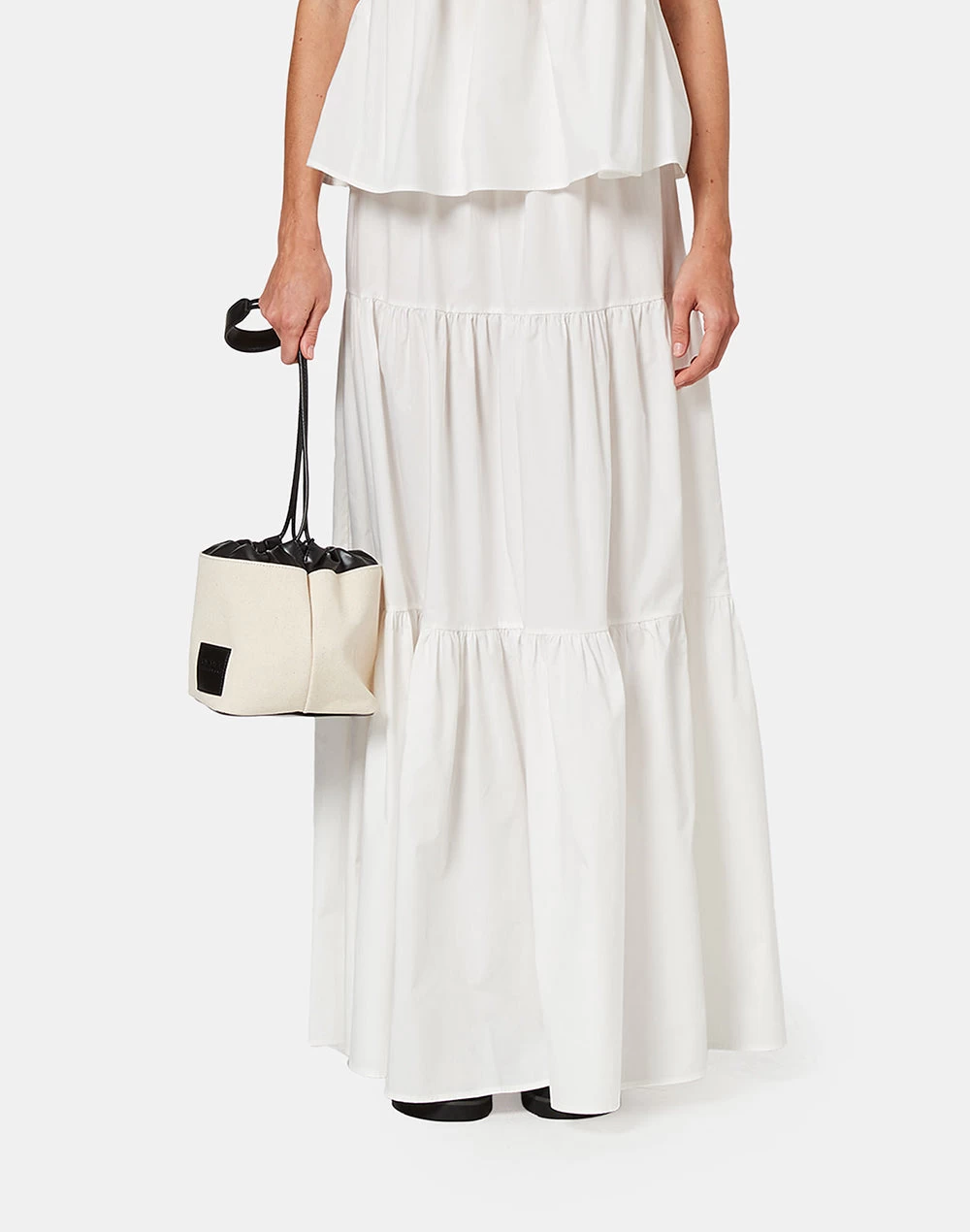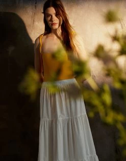 Volume maxi e costruzione femminile per la gonna lunga a balze in popeline di cotone. Versatile, da abbinare come vuoi.