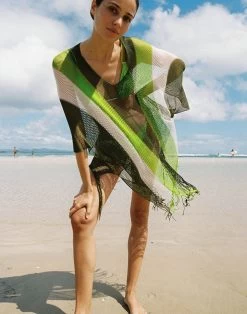 Kaftano colorato con frange e scollo a V. Cade morbido sopra il bikini e dona un tocco di eleganza al look da spiaggia.