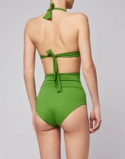 Eleganza senza tempo con questo slip culotte a vita alta e costruzione a doppio strato. Le linee sinuose e la morbidezza del tessuto fanno di questo capo un must-have per il tuo guardaroba costumi. Abbinalo al top bralette in coordinato, l’effetto romantico è assicurato.