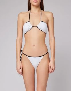 Scopri questo elegante top a fascia regolabile con i laccetti centrali da annodare al collo. Perfetto per valorizzare spalle e collo e per giocare con più stili diversi. Da abbinare allo slip in coordinato, venduto separatamente.