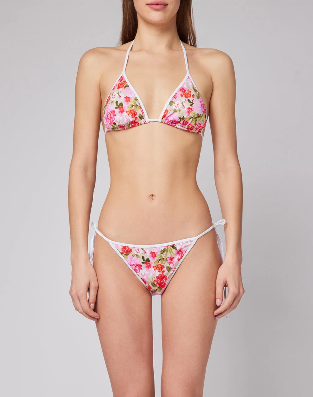 La stampa Amaranta fiorisce su questo top a triangolo regolabile, da abbinare allo slip in coordinato e mettere subito in valigia. Comfort, colore e abbronzatura perfetta garantiti.