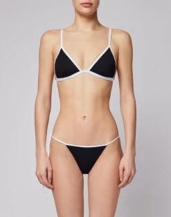 Un top bralette unico e inimitabile, dalla linea elegante e sinuosa, messa in luce dai colori a contrasto. Per chi cerca uno stile da spiaggia ricercato. Slip in coordinato venduto separatamente.