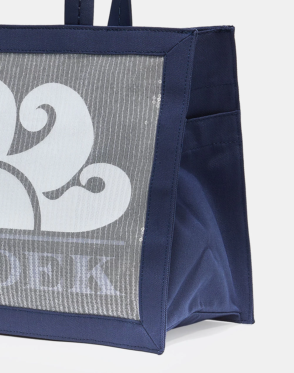 Borsa media in mesh con dettagli in paillettes con logo Sundek stampato. Questa borsa è perfetta per la spiaggia grazie alla sua rete a trame sottili che impediscono il passaggio della sabbia. Charm tavola da surf applicato.