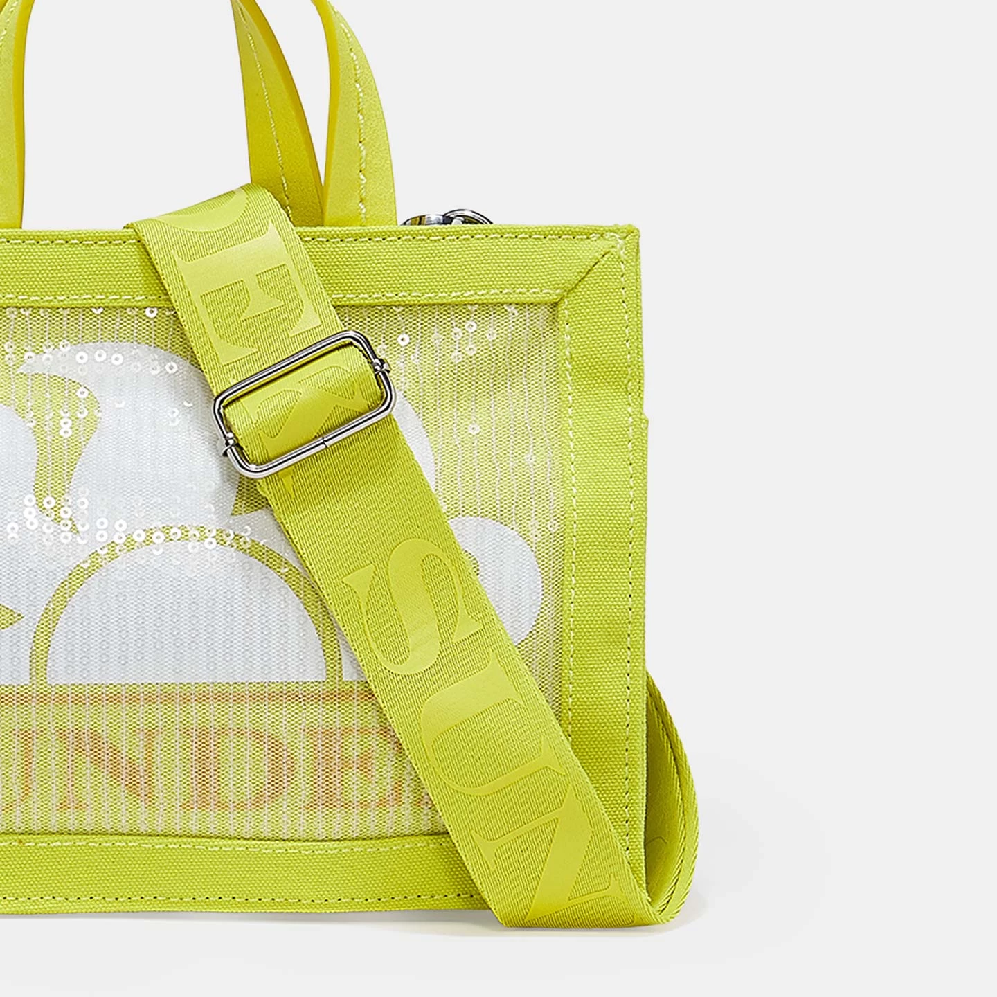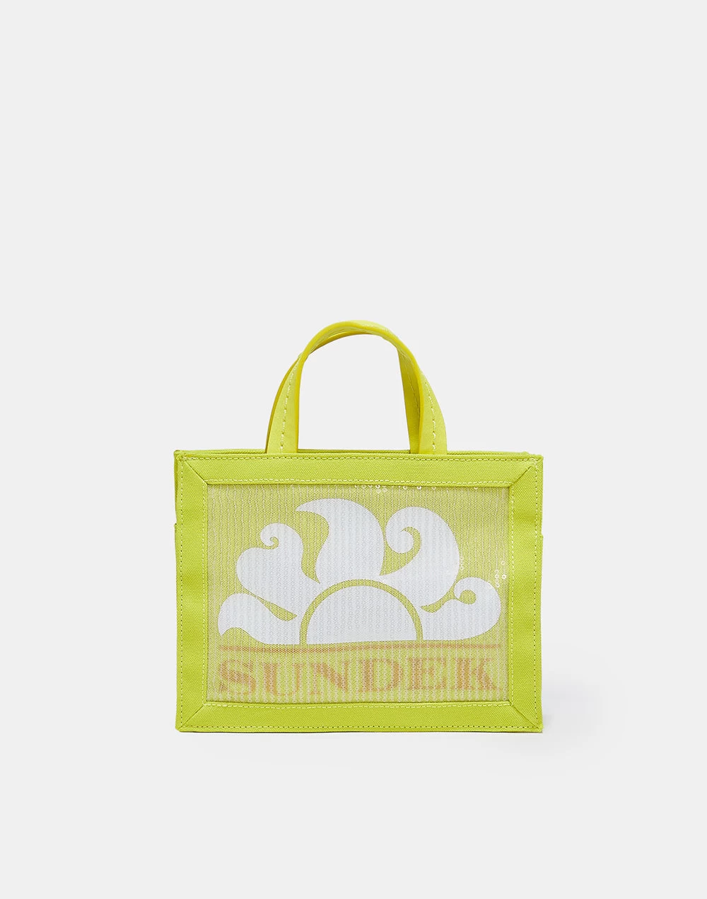 Borsa piccola in mesh con dettagli in paillettes con logo Sundek stampato. Questa borsa è perfetta per la spiaggia grazie alla sua rete a trame sottili che impediscono il passaggio della sabbia.